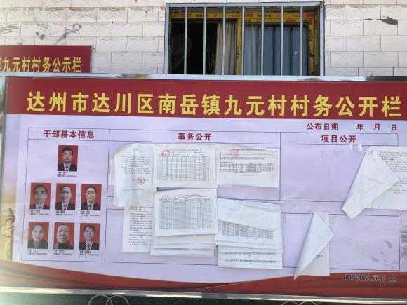 团队成员前往九元村村委会 九元村村务公开栏