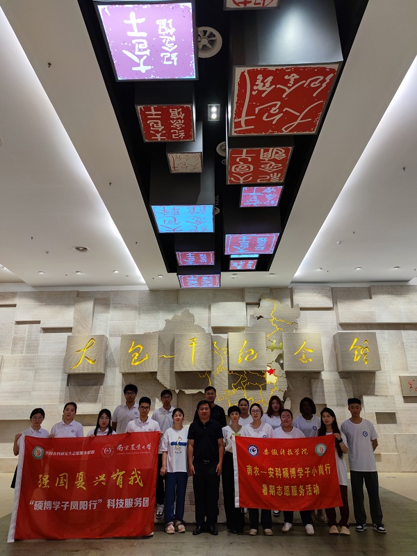 7月4日,安徽科技学院的9名师生还与南京农业大学的6位硕博学子组成了“南农——安科硕博学子小岗行”志愿服务队,分成两组走进小岗村开展科技服务活动,用实际行动践行“以强农兴农为己任”的使命,为小岗村农业现代化发展、推进乡村振兴战略贡献自己的青春力量。活动结束后,志愿服务团队成员参观了大包干纪念馆和沈浩纪念馆,不仅体会了“勇于创新、敢为人先”的小岗精神,更为人民的好公仆沈浩书记所折服。