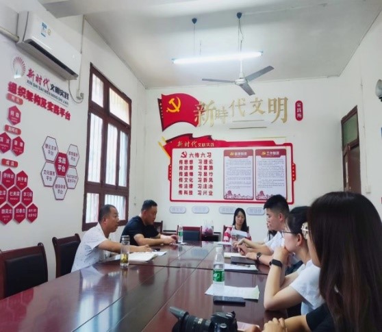 经世致用团队五龙小队秉着“擒贼先擒王,访谈先宏观”的想法,第一站来到了阆中市天宫镇人民政府,找到了声名远扬的“农业专家”李斌镇长。李镇长热情并详细地向小队成员们介绍天宫镇及五龙村的相关概况以及脱贫攻坚以来的辉煌发展历程。其中特色柑橘产业和旅游产业是天宫五龙的亮点产业,着重介绍了其发展现状以及困境与阻碍,并就天宫镇及五龙村柑橘产业发展管理模式、五龙村的旅游产业主体和特色民宿运营等相关内容与团队成员展开热烈讨论。
