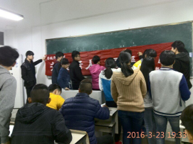 班会伊始,152班团支书张静首先向大家讲述了开展此次主题班会的目的以及意义,紧接着又阐述了八字真经的内容含义:勤学格物,让学习成为一种人生习惯;修德诚意,让德行成为一种人生追求;明辨是非,让理智成为一种人生智慧; 笃实行久,让实干成为一种人生气度。接下来,同学们积极发言,将习大大传授的八字真经融入到日常生活和学习中,分享了自己的感悟和收获。152班长赵圣圣进行总结发言,他指出,大家把勤学作为生活的习惯,把修德作为自觉的追求,坚持冷静思考,做到坚忍不拔,既是习大大“八字真经”的要求,也是同学们成长成才的前提基础。活动最后,同学们纷纷在横幅签上习大大传授的八字真经,目的在于让同学们要牢记习大大的教导,将八字真经内化于心,外化于行。