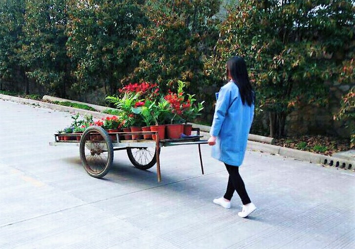 清晨的雾气还未完全消散,便推着一车花草,带着一身期待,朝着未来一路进发。我看见东方有火红火红的希望。