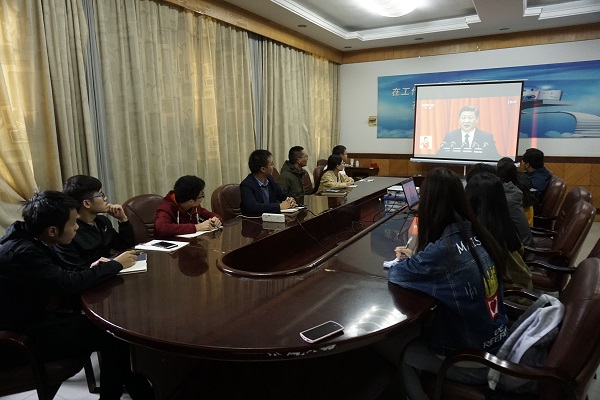中国共产党第十九次全国代表大会于10月18日上午9:00在北京人民大会堂隆重开幕,这是在全面建成小康社会决胜阶段、中国特色社会主义发展关键时期召开的一次十分重要的大会。是全党、全国各族人民政治生活中的一件大事。为加强学生骨干的思想政治教育,18日上午,宣传部组织新媒体中心大学生记者团、广播台、图片社学生宣传骨干在中办公楼二楼会议室在线观看党的十九大开幕式,学习讨论会议精神。
