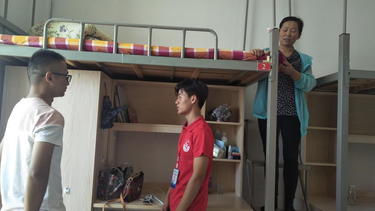 报到后,汤默涵和妈妈在志愿者的带领下,前往宿舍安置。妈妈只是默默地走在儿子身后,默默地跟着他的脚步,就像从小学到高中毕业,儿子去哪里上学,妈妈就跟到哪里。她不多言,只是默默地支持。