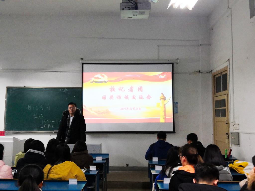 12月15日晚,校大学生记者团国奖访谈交流会在学知楼107教室举行。原记者团团长江旭聪、梁潇应邀参加交流会并发表讲话,18级凤阳校区记者团全体成员到场聆听。交流会由记者团凤阳校区团长王明蕾主持。