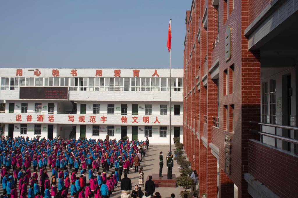 国旗班赴凤阳工小举行升国旗活动,既是校地友好合作的体现,也是一次红色主题教育活动,迎风飘扬的红旗下挺立的军绿色身影,相信这幅画面将永远留在孩子们的心中。(特约通讯员:王明蕾 摄影:余良)