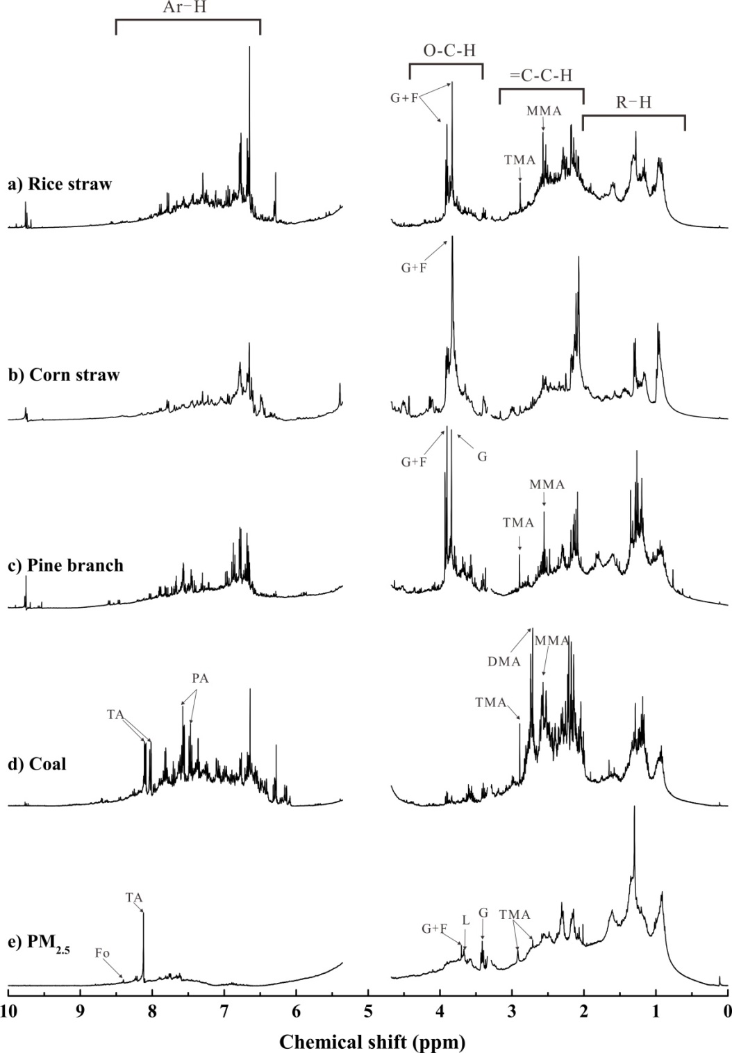 一次燃烧排放及大气环境中HULIS的1H NMR特征对比