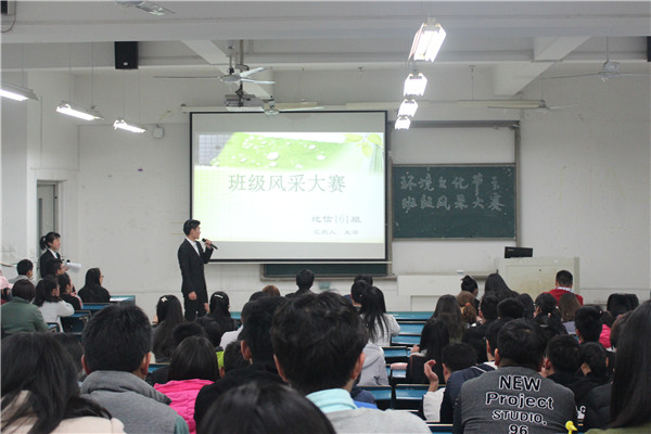 为体现班级凝聚力、团队协作能力以及提高各班级积极向上的精神面貌,3月5日晚,资源与环境学院于新B304举办了班级风采大赛初赛。特邀校学生会学习部部长陈许、建筑学院人资部部长魏申通、管理学院人资部部长曹德培、管理学院文艺部部长史海南、生命科学学院主席团助理杨友婷担任此次大赛评委,2016级同学观看了本次比赛。