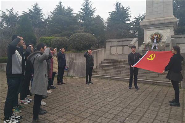 党员们在革命烈士纪念碑前怀着崇高的敬意向革命烈士献上花圈,默读碑文,集体向着革命烈士纪念碑鞠躬并默哀三分钟,用这种方式表达对先烈的崇敬和哀思。全体党员在烈士纪念碑前,面对党旗举行了入党宣誓仪式,重温入党誓词,使党员们更加坚定共产主义理想,坚定为共产主义事业奋斗终身的信念。