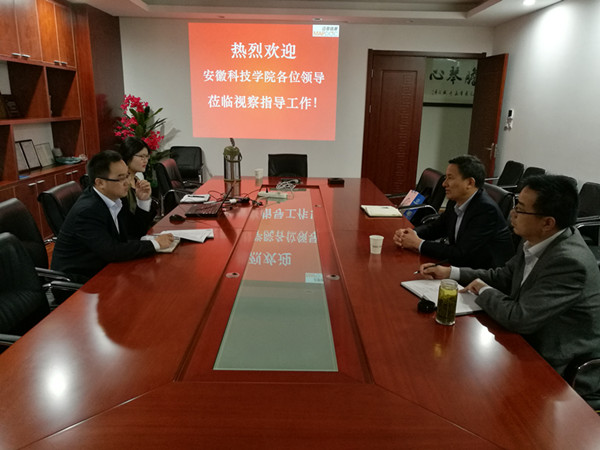 27日下午,安徽国祯环保节能科技股份有限公司副总经理石小峰热情接待了考察组一行,并详细介绍了该公司的发展情况。公司创建于1997年,2014年成功在深交所创业板上市,从事污水处理20年,公司长期致力于水资源综合利用,是安徽省最大的环保类上市企业。石小峰详细介绍了公司对学生的培训工作情况,并就下一步与学校的产学研合作共建模式达成了初步意向。