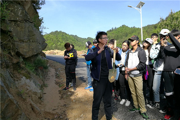 实习期间,带队老师详细介绍了大别山地区山川形成的原因及其特点,讲解了山体裸露图层的土壤剖面结构以及植被的生长特点,说明了山涧河流中流水侵蚀痕迹及其地貌形成的原因与特点;同学们认真听讲,仔细记笔记,积极回答老师提问,在老师的引导下认识了地信专业在自然环境领域的应用,倍感自然地理的神奇,祖国山川的伟大。