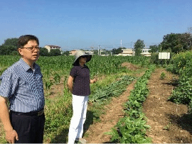 在邹长明的陪同下,刘英一行先后参观了学院绿肥种质资源圃,绿肥盆栽试验及土壤与环境研究中心。邹长明向刘英一行介绍了学院试验基地绿肥品种筛选、绿肥试验的开展情况,并介绍了土壤与环境研究中心实验室建设和管理总体情况。
