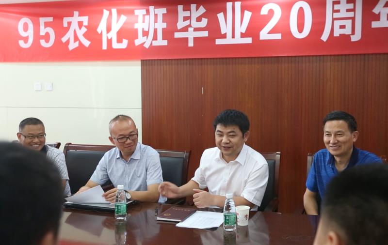 会上,95级农化(1)班校友介绍了毕业20同年所取得的成绩,为学校和学院发展所取得的成绩感到骄傲和自豪,表示今后工作中加强联系,以母校为荣,为母校增光添彩。95级农化(1)班校友向母校赠送牌匾一副,并与学院领导、老师合影留恋。(特约通讯员:李孝良)