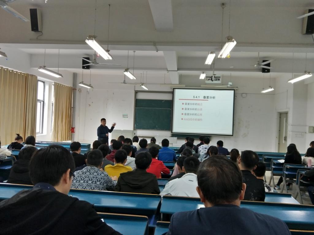 张振国博士围绕地理信息科学专业核心课程《GIS空间技术》中“叠置分析”章节,采用问题式、启发式等教学方法,通过大量的实例将晦涩难懂的专业知识讲解得通俗易懂,既调动学生参与课堂的积极性,又提高了课堂教学效果。参与听课的教师一致认为,张振国博士授课重点突出,PPT制作精美,授课内容充实凝练,语言表达流畅,教学特色鲜明,课堂节奏顺畅,师生互动积极,氛围轻松活跃,取得了较好的课堂实效。