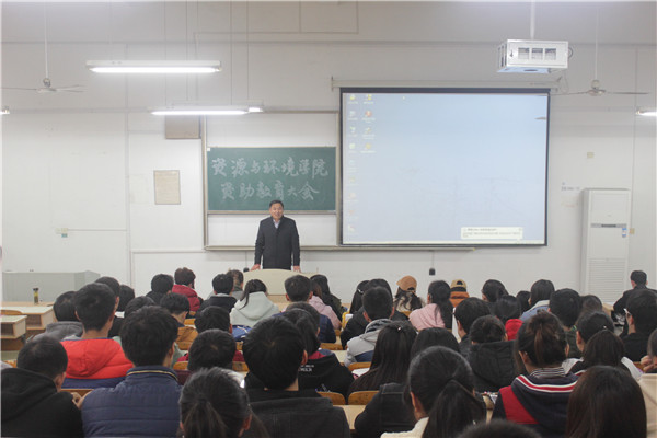 为加深同学们对资助工作的认识,引导同学们合理使用国家各类奖助学金。11月29日下午,资源与环境学院在求A204举办资助教育大会。学院党总支书记李孟良、新生辅导员杨小晗、非毕业班级的资助委员及国家励志奖学金和国家助学金的获得者参加了本次会议,会议由杨小晗主持。