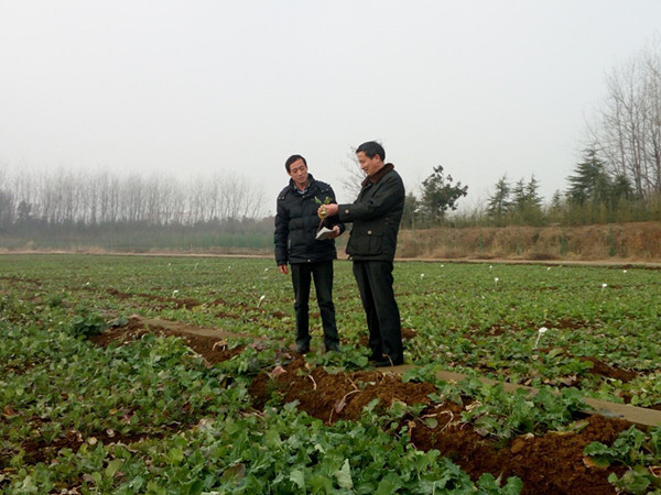 1月17日,安徽省油菜棉花产业技术体系岗位专家、我校教师李孟良教授带领资源与环境学院王泓博士,赴滁州市调研油菜雪后冻害情况,并对油菜灾后田间管理技术进行指导。