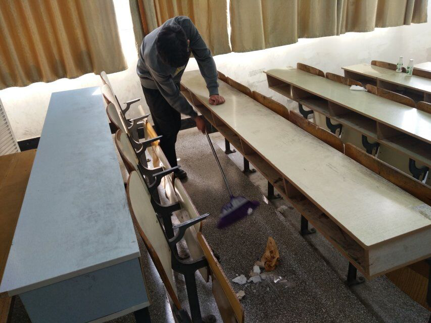 本次绿色校园行活动主要针对教室的清扫,活动过程中,同学们拿起扫帚,提上水桶,精细到教室的每一个墙角,每一处灰尘。他们热情洋溢、互帮互助,充分体现出了当代大学生阳光向上、精神饱满的良好状态。同时,大家本着“要做就做到最好”的态度,针对墙面污点、卫生死角、桌椅摆放、地面灰尘等问题进行了不同方式的处理,都取得了较好的效果,最终使整个教室焕然一新。活动结束,全体成员在学知楼前合影留念。