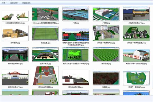经过为期两个月的航测,乡村园区设计规划,三维建模,调研,“基于CityEngine等GIS平台的三维小岗未来规划”暑期实践三下乡活动三维建模作品截图如下所示: