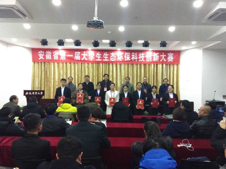 由安徽省普通本科高校环境类专业合作委员会主办、安徽农业大学承办2018年安徽省大学生生态环保科技创新大赛决赛于12月28日在安徽农业大学举行,全省16所高校的学生参加了比赛。大赛分实物类作品、创意类作品、实践类作品三个类别,我校环境工程专业徐彦涵、万梦、赵壮壮团队获实物类省级二等奖;赵壮壮、林宇、操甜甜团队和操甜甜、赵壮壮、陈坤获实物类省级三等奖;肖新、谢越、马万征、李忠芳分别荣获大赛优秀指导教师。