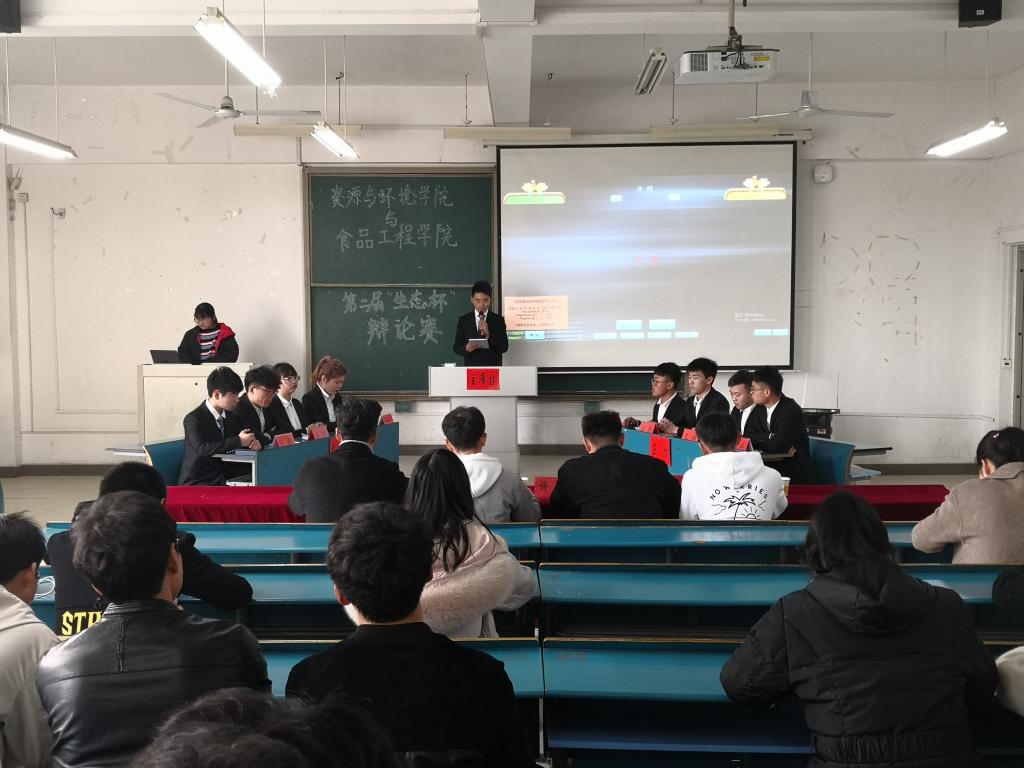 3月10日下午,资源与环境学院与食品工程学院联合举办的第二届“生态杯”辩论赛在新知楼B302、303拉开帷幕。资源与环境学院学生会副主席汪日松、吴凡,食品工程学院学习发展中心中心主任顾轩宇,英语学习协会副会长马国恒,资源与环境学院学生会部长江飞、丁子天,食品工程学院部长李赛、方建雄应邀出席本场辩论赛并担任评委。