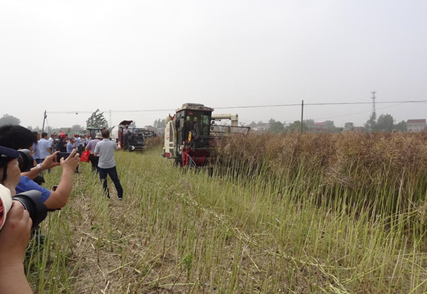 会议期间,与会人员共同前往漳湖镇大湾村和中棉所功能型菜籽油7D产地进行了实地观摩。“中油杂19”全产业链绿色高效技术模式受到与会者普遍好评。会议还现场演示了油菜精量联合直播技术、无人机田间作业、油菜分段联合收获技术等油菜全产业链绿色高质高效关键技术装备。