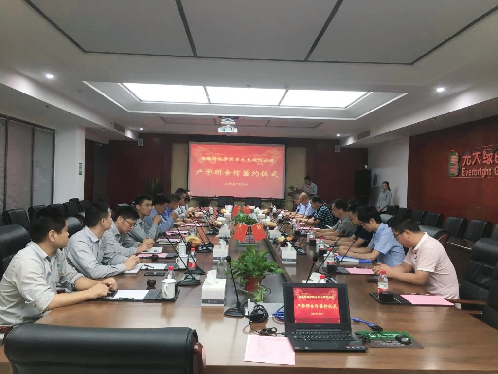 郭亮在讲话中,简要介绍了学校的基本情况,向光大城乡再生能源(凤阳)有限公司对我校办学的支持表示感谢,对公司在人才及科技方面的重视表示赞赏,并对本次校企合作给予充分肯定。郭亮指出,做好产学研合作,要不断提高学校对社会经济发展的支撑力和协同创新力,本次合作,将为学校教师科研、学生实习、毕业生就业提供机遇,为企业人才需求、科技研发提供支撑,有效解决各自循环链的“源端”至“末端”的问题。