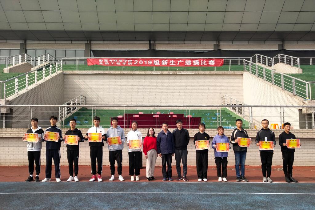 为丰富学生校园文化生活,提高学生的身体素质,展现学生积极进取、奋发向上的精神风貌。11月9日上午,由资源与环境学院和食品工程学院联合举办的2019级新生广播操比赛在西区田径场拉开帷幕。动物科学学院学生会主席孙静、人文学院学生会主席徐鹏飞、外国语学院学生会主席陈玉婷、食品工程学院学生会副主席曹森彬和资源与环境学院学生会副主席徐彦涵应邀担任本次比赛的评委,食品工程学院副处级辅导员开金苗、团委副书记赵传磊和资源与环境学院团委副书记杨小晗莅临现场观看了比赛。