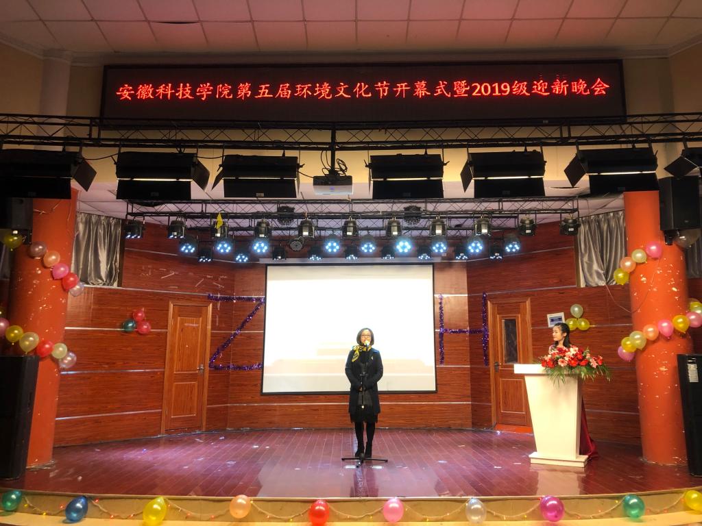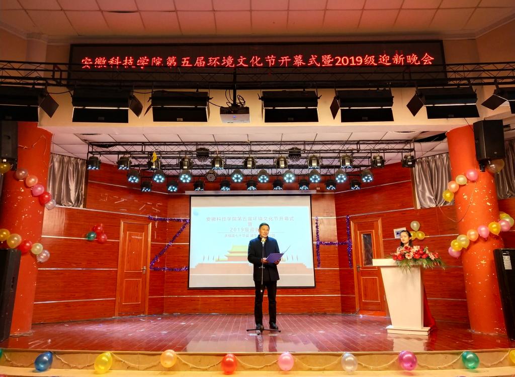 为庆祝新中国七十华诞,弘扬绿色发展理念,加强校园文化建设,12月1日晚,资源与环境学院在校学术报告厅举办第五届环境文化节开幕式暨2019级迎新晚会。苏州北控科技有限公司董事长孔维芳、董事长助理姜池敏应邀出席开幕式,学院党总支书记李孟良、院长肖新、分工会主席段立珍、副处级辅导员谢宜勤、部分教师及2018、2019级全体学生参加开幕式并观看晚会。