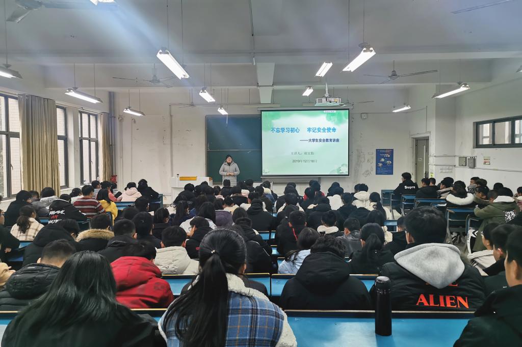 为进一步增强大学生安全意识,提高防范能力,促进学院安全稳定工作。12月18日下午,资源与环境学院在新知楼B103举行大学生安全教育讲座。本次讲座由学院副处级辅导员谢宜勤主讲, 2019级全体学生参加此次讲座。