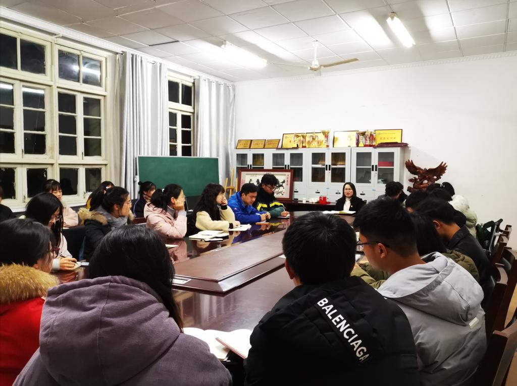 为总结本学期工作,布置寒假实践活动,资源与环境学院于12月26日晚在院会议室召开团支书工作会议。院团委委员、全体非毕业班团支书参加此次会议。会议由团委副书记杨小晗主持。