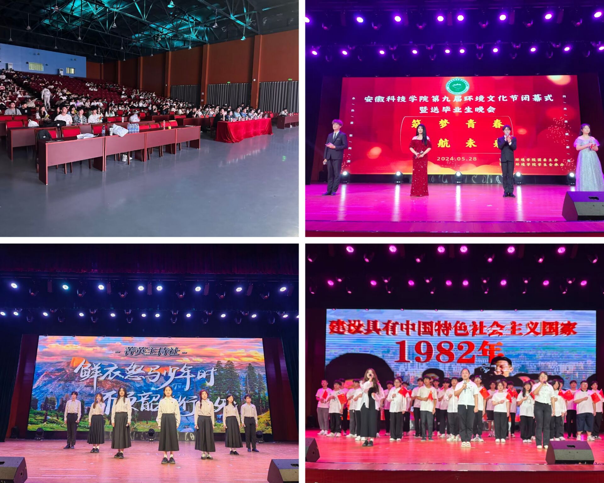 5月28日晚,资源与环境学院于大学生活动中心举办第九届安徽科技学院环境文化节闭幕式暨送毕业生晚会。资源与环境学院党委副书记沈树周,副院长邹海明,学院相关教师应邀出席,22、23级及毕业班全体同学参加本次晚会。