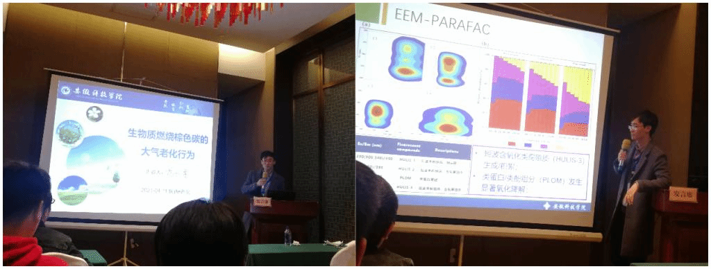 范行军和纪文超博士参加了由中国科学学会主办的“第25届大气污染防治技术研讨会”。范行军博士作了题为“生物质燃烧棕色碳的大气老化行为”的学术报告,介绍了近年来在安徽科技学院科研平台上开展的关于生物质燃烧棕色碳的暗OH自由基老化和O3老化的系列研究成果,得到了与会学者的关注和认可。会议期间,范行军和纪文超博士还主动与清华大学、天津大学、合肥工业大学、昆明理工大学等高校的专家学者进行了深入交流、探讨,借鉴学术思想、讨教学术经验,以期提升自身的科研水平并拓展研究思路。