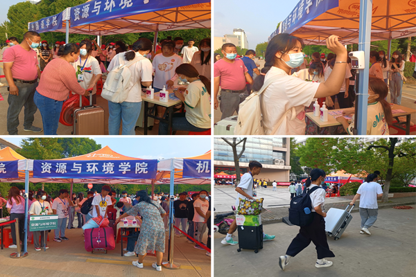 炎炎烈日,难敌新生求学渴望;悄悄奉献,方显志愿者无私与真诚。9月17日,安徽科技学院凤阳校区新生开始报到。前一天早上,资源与环境学院的迎新工作正式拉开帷幕。迎新工作人员将所需物资搬运至指定新生报到点,为新生们的到来做好充分的准备。迎新时,学院党委书记李孟良,党委副书记沈树周,党政办主任吴国良,专职辅导员王丽萍一行莅临现场,对新生报到工作进行指导检查,以确保迎新工作顺利开展。