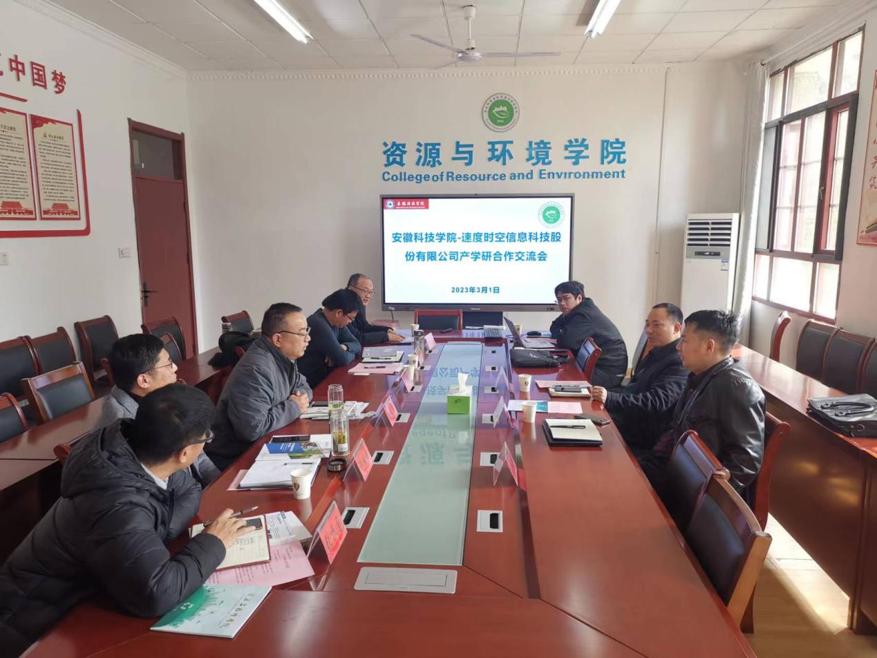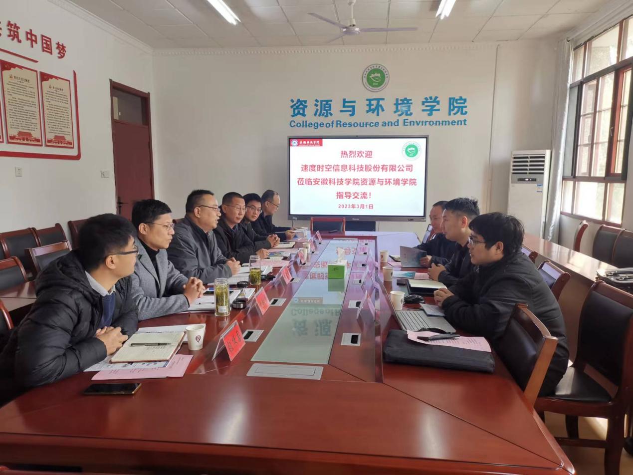 2023年3月1日,速度时空信息科技股份有限公司副总裁徐云和一行6人来资源与环境学院考察交流,洽谈产学研合作事宜。资源与环境学院党委书记、院长李孝良、副书记沈树周、副院长李飞跃、农业资源与环境系主任赵建荣、地理信息科学系主任张振国出席会议,安徽科技学院科研处副处长李同杰受邀参加会议。