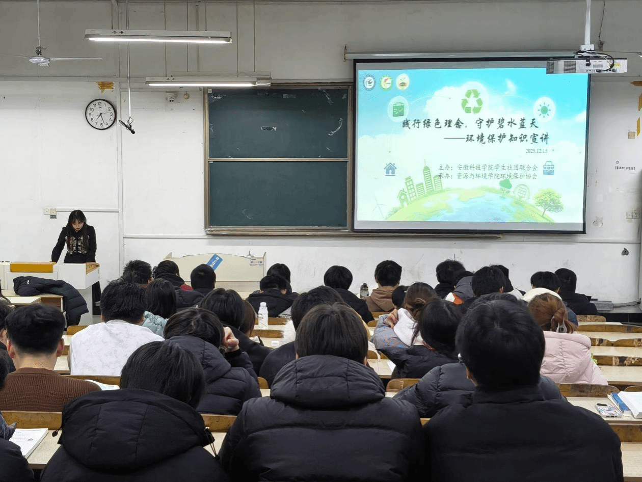 为提升学生环保意识,推动绿色校园建设,12月15日晚,资源与环境学院于求知楼A103举办“践行绿色理念,守护碧水蓝天”环境保护知识宣讲活动,2025级全体学生参与本次活动。