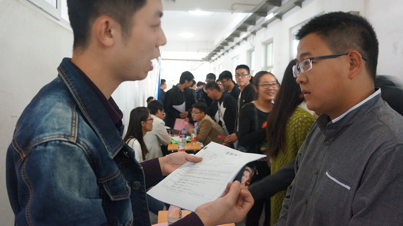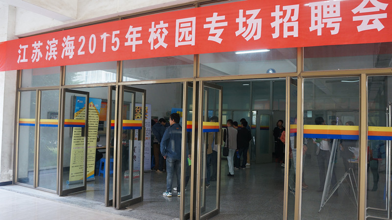 10月28日下午,江苏省滨海县人力资源与社会保障局组织18家用人单位来校举办校园专场招聘会,招聘活动在求知楼B一楼进行。我校2016届相关专业毕业生近300人携带求职材料前往应聘。