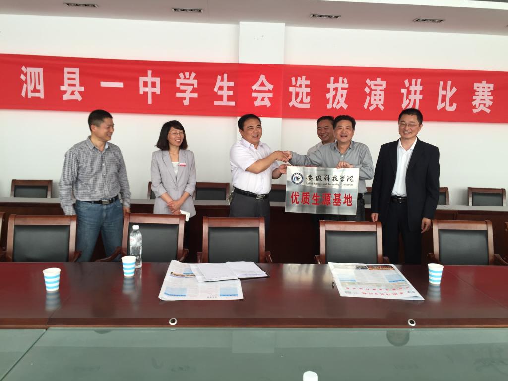 韦文联介绍了学校的办学历程、办学特色、师资力量、科研实力、人才培养和毕业生就业等情况,总结了我校往年在宿州地区招生情况,并重点推介了我校蚌埠校区2017年招生专业。他希望与宿州地区优质生源中学继续加强沟通,深化合作,共同推进“高校高中联合”,形成人才培养的合力,培养出更多的优秀人才。他还代表学校与部分中学洽谈了“优质生源基地”共建工作,签订了合作协议,并为中学授牌。