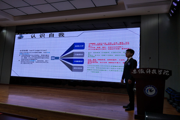 大赛以“规划精彩人生、放飞青春梦想”为主题,旨在强化大学生职业规划意识,培养大学生的社会责任感和创新精神,更好地服务现代化五大发展美好安徽建设,为赢取美好未来奠定基础。活动自4月份启动,各学院积极响应,广泛宣传,精心组织,认真指导,营造了良好的比赛氛围,并为在校大学生做好职业规划做出指导。校级决赛分为职业生涯规划书评比、职业人物访谈报告评比、PPT陈述及评委现场问答四个环节。比赛过程中,参赛选手结合所学专业,通过设定职业目标,从自我认知、职业认知、职业目标路径设计、规划与计划实施等方面对自己的职业规划与梦想进行阐述,并现场回答了评委提问,充分展现了我校大学生良好的精神风貌、笃实的学风和自信的气质。