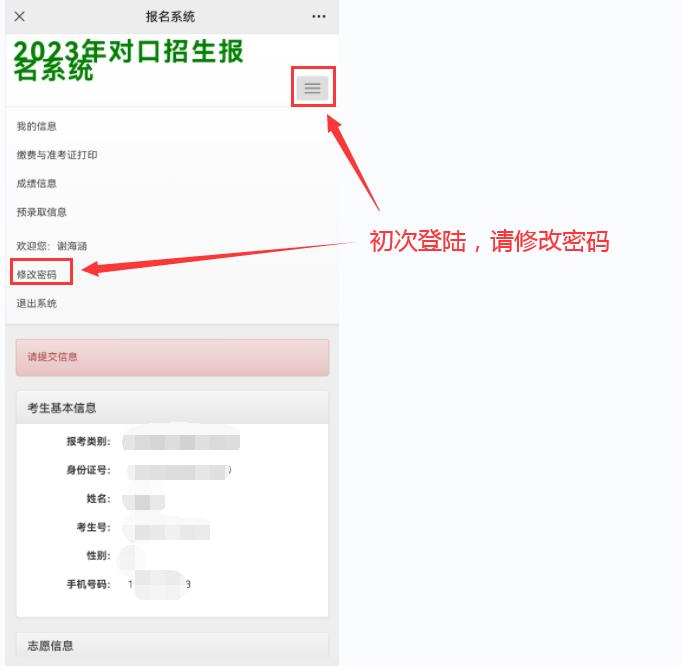 第三步:输入账号密码登录系统:账号:身份证号,密码:考生号后六位。