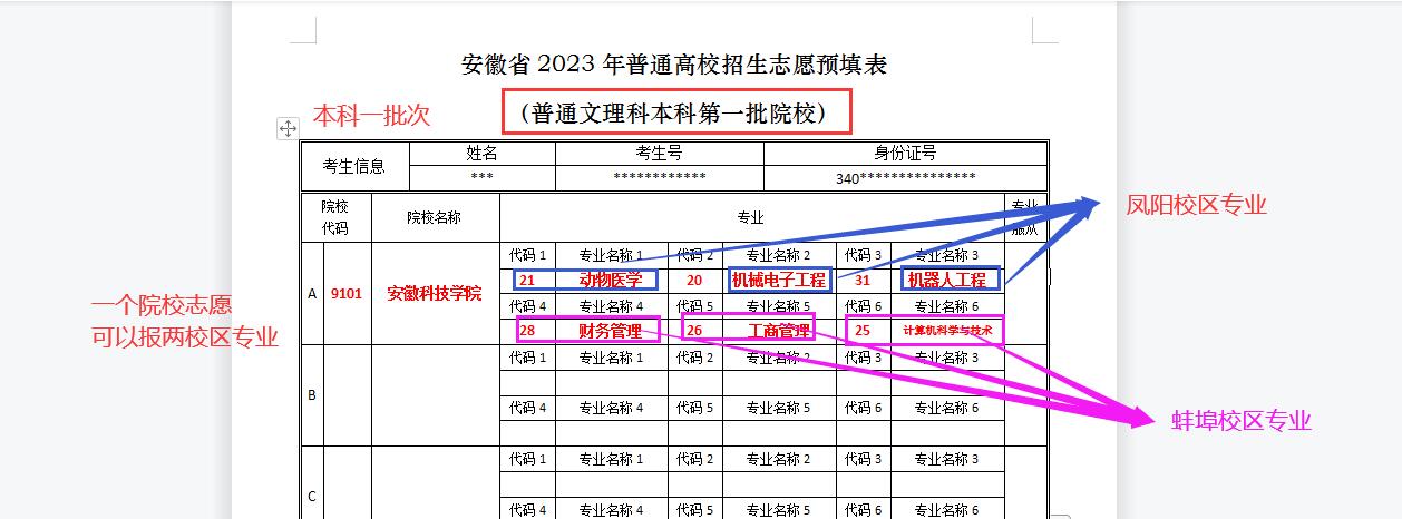 本二批次设置三个投档单位,每个投档单位对应一个院校志愿。各投档单位之间生源互不调剂。在《2023年安徽省普通高校招生报考指导(文科册)》第86页,理科册在第186页。