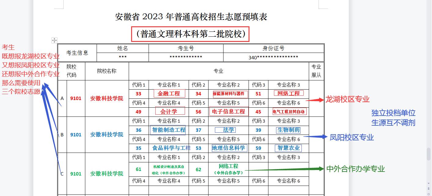 本二批次设置三个投档单位,每个投档单位对应一个院校志愿。各投档单位之间生源互不调剂。在《2023年安徽省普通高校招生报考指导(文科册)》第86页,理科册在第186页。