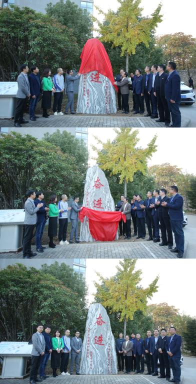 据悉,此校庆石系全体杭州校友出资购买,安放于凤阳校区西校区新知楼A楼东侧草坪处,为学校增添了一处新的景观。该石高3.75米,宽1.90 米,厚0.66米,石头上镌刻有“奋进”主题词,另篆刻:热烈祝贺安徽科技学院建校七十周年!