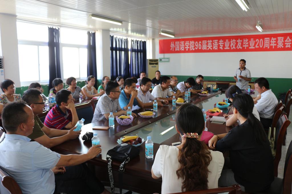 “岁月如歌,共忆同窗往事,来日似锦,再叙师生情缘”。7月23日至24日,外国语学院96届英语专业校友从全国各地齐聚母校举行毕业二十周年聚会。校招生与就业处副处长、校友联谊会办公室主任杜小明,外国语学院党政领导参加了座谈会。座谈会由原外国语学院辅导员、现农学院党总支书记何世潮主持。