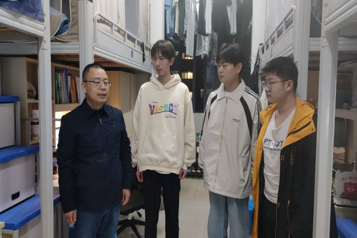 杜小明一行对学生的宿舍环境进行了细致的检查,查看了宿舍的卫生状况、安全设施以及生活设施等,对发现的问题及时提出了整改意见。同时,与学生展开亲切交谈,了解学生的学习、生活情况,以及存在的困难和需求。在交谈中,杜小明鼓励大家要保持良好的心态,积极面对学习和生活中的挑战,着重叮嘱学生要注意宿舍安全,遵守学校规章制度,共同营造一个和谐、安全、整洁的宿舍环境。