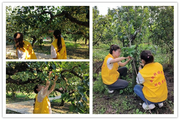 活动中,团队成员拿着小刀和剪刀参与到了梨树裂果的摘除、梨树嫁接后薄膜的祛除等农作过程。他们通过实地参观和调研,深入了解了农业经济运营、农村金融服务以及乡村市场发展等多方面的情况,对农民的经济状况、收入来源以及面临的经济问题有了更为直观的了解。他们运用所学的财经知识,对农户的财务状况进行分析,就如何有效降低生产成本、提高产品附加值、利用电商平台拓宽销售渠道等与农户进行了深入交流,提出了自己的看法与建议。