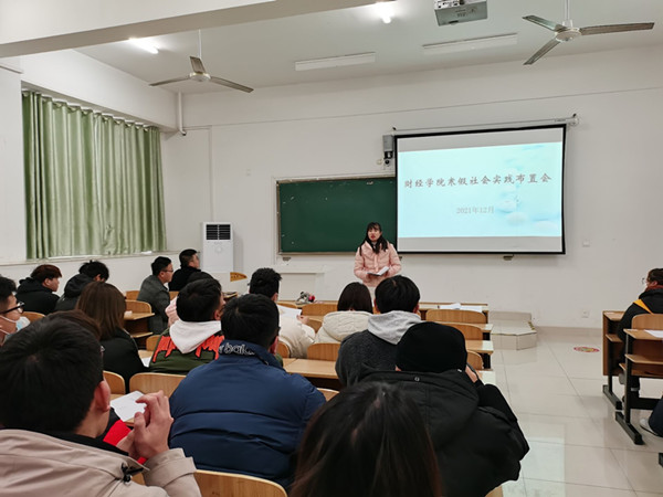12月24日中午,财经学院在致知楼C103教室召开了2022年大学生寒假社会实践启动会。院团委副书记王天云,专职辅导员朱中军、季昌文及各班级团支部书记、班长参加会议。会议由院团委书记薛枫主持。