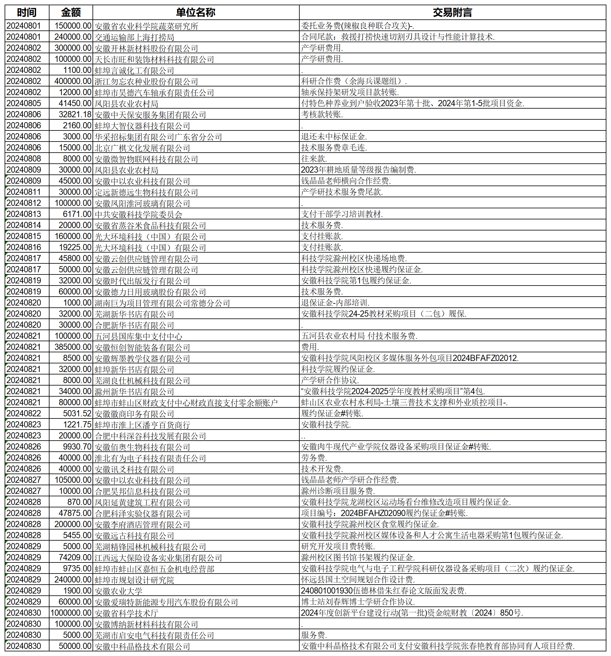 2024年08月份到账信息(20240801-20240831)-2024年08月31日更新