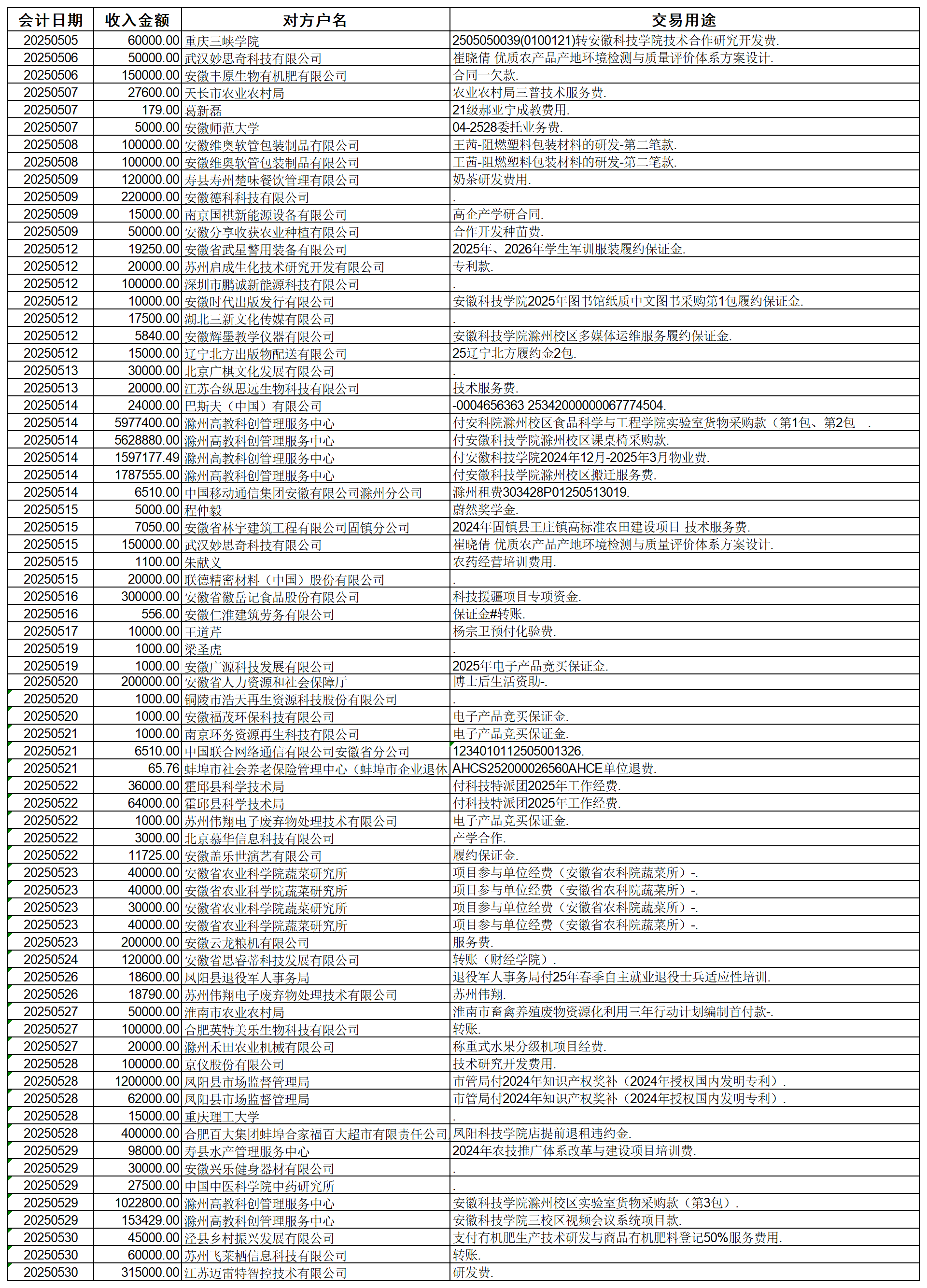 2025年5月份到账信息(20250501-20250531)-2025年5月31日更新(请各位老师汇款至学校账户时务必写清交易附言)