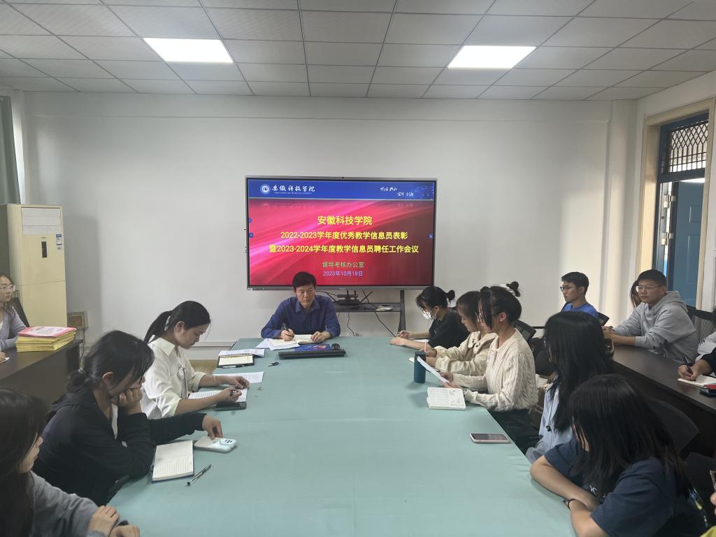 10月18日下午,督导考核办公室召开学生教学信息员工作会议,表彰2022-2023年度优秀教学信息员,聘任2023-2024年度教学信息员,督导考核办公室主任王培章、督导考核办公室张欣、谢静静老师出席会议,各教学院(部)教学信息员代表参加会议,会议由谢静静主持。
