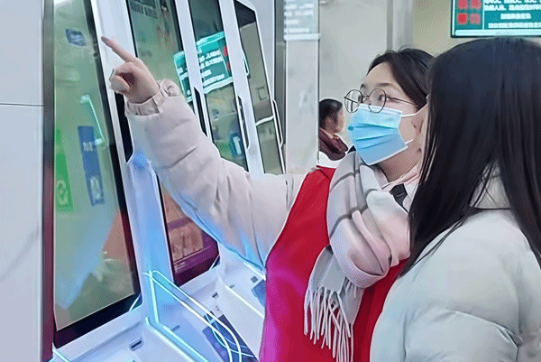 实践前期,她主动与医院团委对接,熟悉岗位职责和工作流程。服务期间,协助患者使用自助设备完成挂号、缴费与报告打印,耐心为患者及家属指引就诊路线,对常见问题进行细致讲解。在遇到专业性较强的问题时,及时向医护人员咨询,确保信息准确。