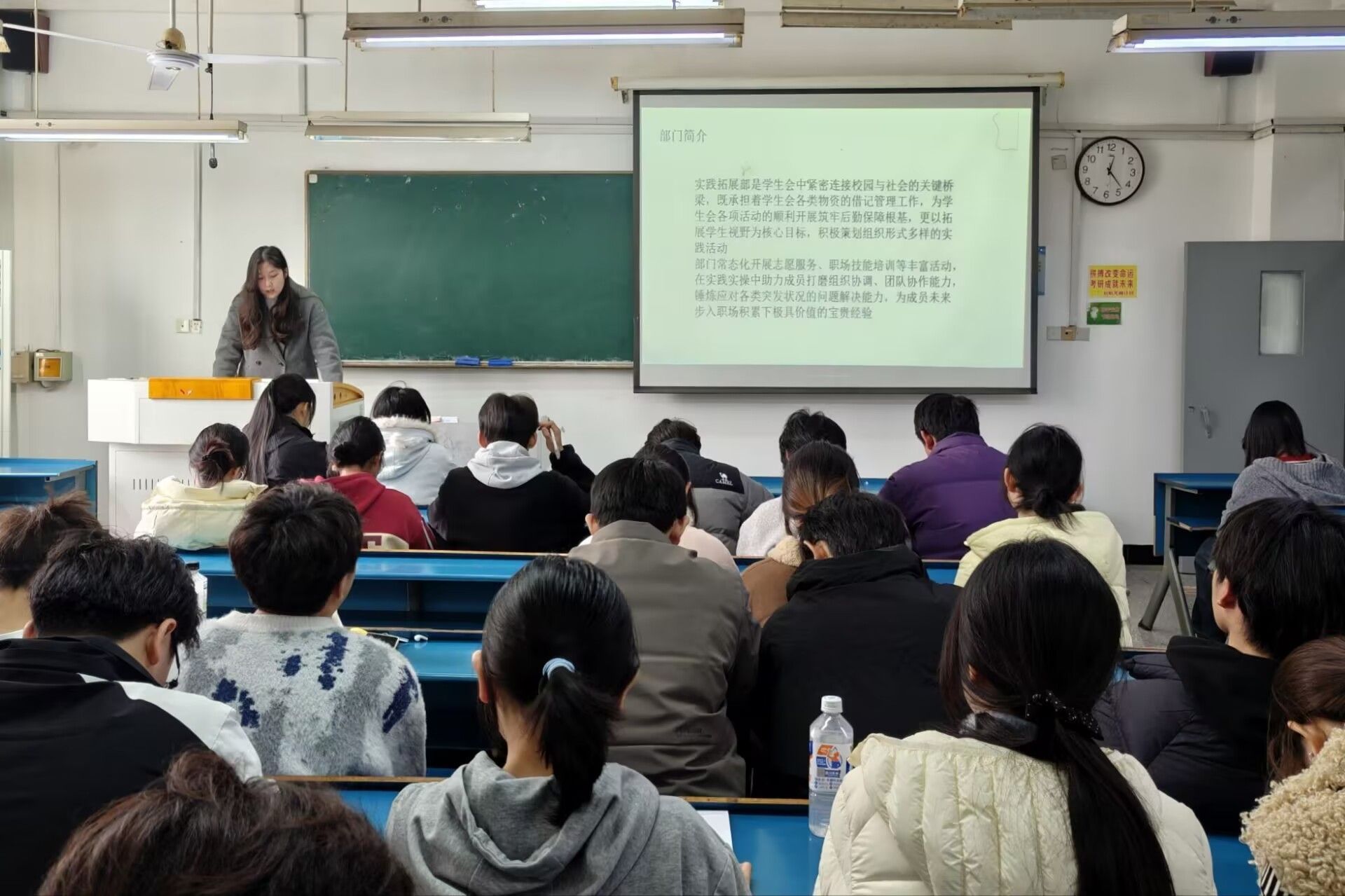 培训现场,井秋谣立足实践拓展部部门本职定位,紧密贴合学生会服务同学、助力学院学生工作开展的核心宗旨,结合自身任职期间的真实工作案例与实操经历,围绕校园实践活动前期策划筹备、现场统筹执行、后期复盘总结全流程,分享团队分工配合、突发问题应急处理、跨部门沟通对接等实用工作技巧,结合日常工作中遇到的实际问题,引导学生会成员摆正工作心态,明确自身职责,主动扛起工作责任,凝聚团队协作向心力。最后,她围绕工作方法、沟通技巧、任务执行等内容细致讲解,帮助学生骨干提升业务能力,为后续工作奠定基础。